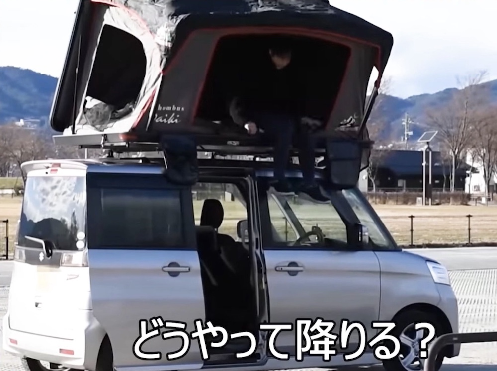 「やっちゃん」さんが車上のテントでくつろいでる時に